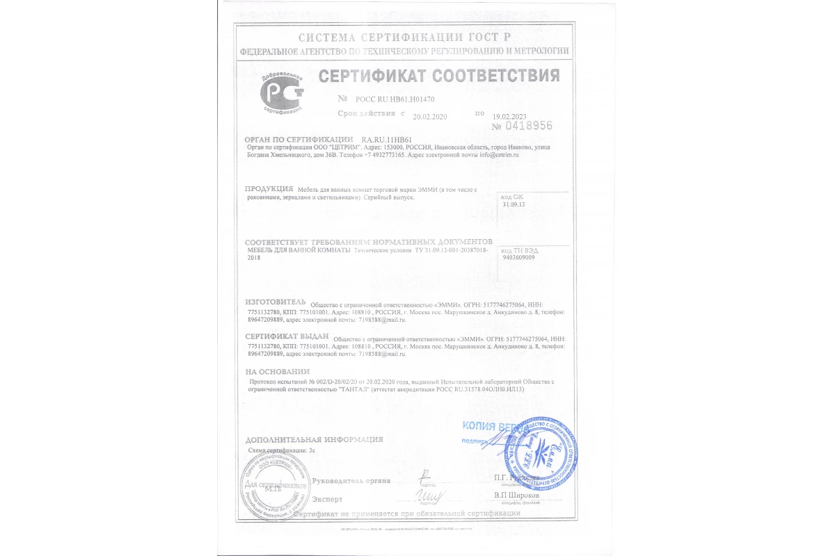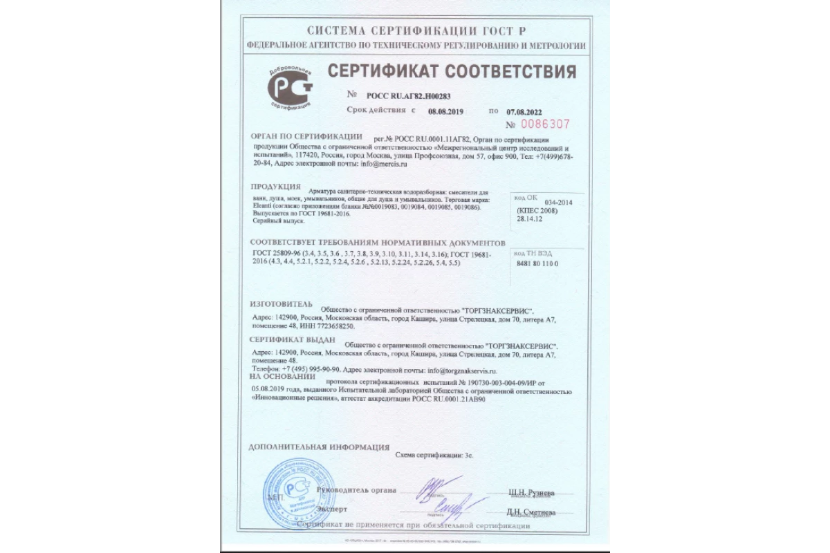Eleanti - Сертификат ГОСТ