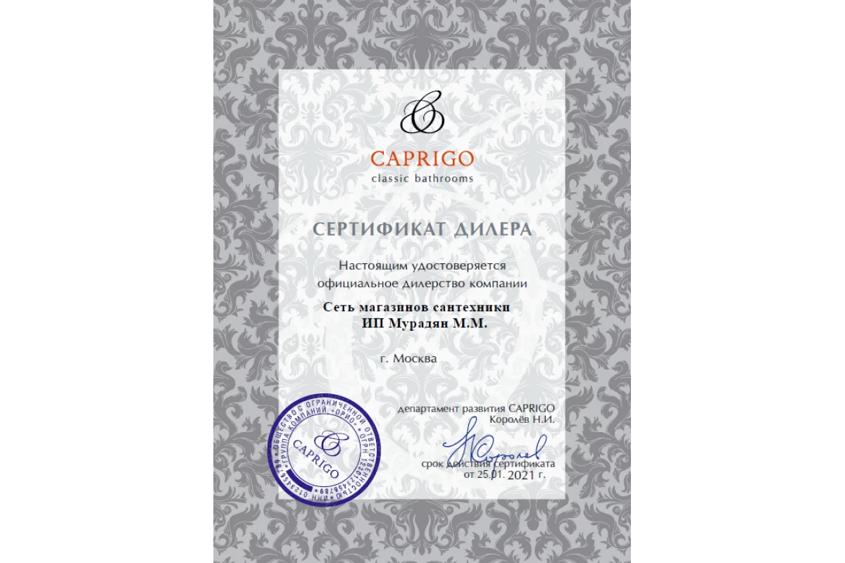 Caprigo - Сертификат дилера